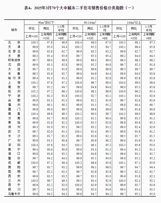 国家统计局日前发布3月份70个大中城市商品住宅销售价格变动情况。