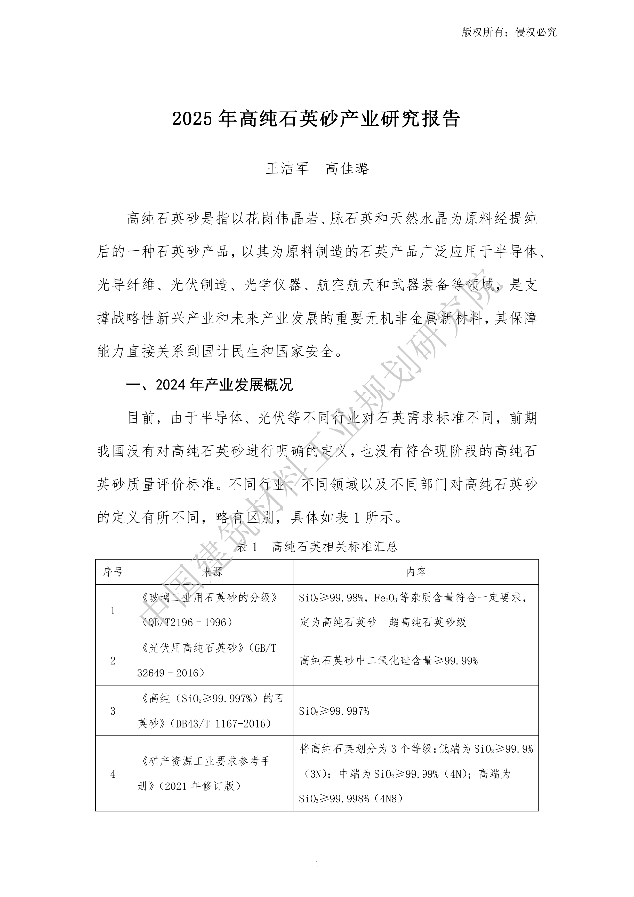 《非金属材料产业研究报告(2025)》日前发布,中国建筑材料工业规划研究院副总工程师王洁军对其中的高纯石英砂产业进行解读。 |