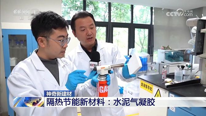 中国建筑材料联合会党委书记、会长阎晓峰:截至2024年9月,绿色建材认证企业超过5300家,认证产品突破1.2万个。我国水泥行业已经实现碳达峰,整个建材全行业有望在2025年前实现碳达峰。 在建筑材料当中,有一种保温材料叫做气凝胶,作为近年来新兴技术之一,它的密度低、重量轻、隔热性能优异,但是成本高昂,在建材领域一直难以普及。刚才的片子里提到一款新型的建材——水泥气凝胶,一种以水泥为主要成分的新型气凝胶,有望破解这样一个难题。我们总台央视记者专门前往研发这项成果的国家重点实验室一探究竟,看一看水泥气凝胶都有哪些神奇的特性。