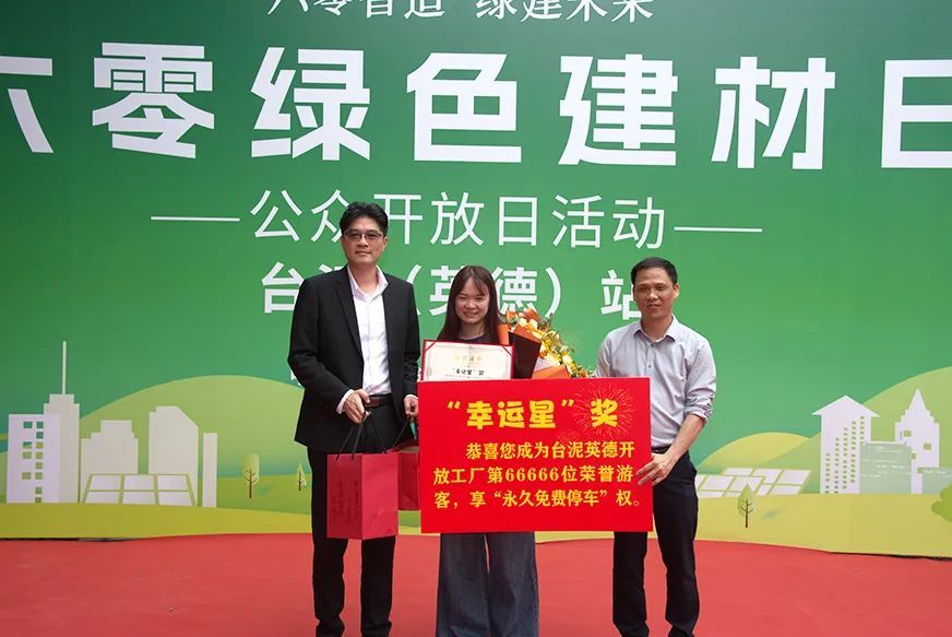 台泥英德开放工厂迎来开放半年以来游客数量爆发式增长,当天台泥“幸运星”送福活动也在本次活动中举行。第66666名幸运游客喜获大礼包,其中包含台泥特色纪念品、荣誉游客称号及永久停车免费等福利。这一环节不仅为游客带来了惊喜,更体现了台泥集团对每一位游客的关怀与重视。 水泥手作坊:创意与环保碰撞