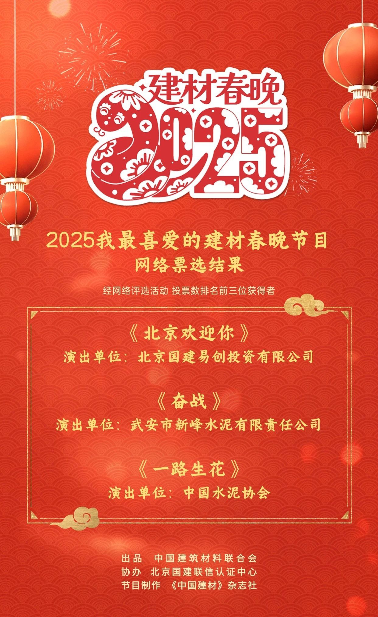 值此元宵佳节之际,经网络投票,“2025我最喜爱的建材春晚节目"(最佳人气奖)票选结果新鲜出炉。 |
