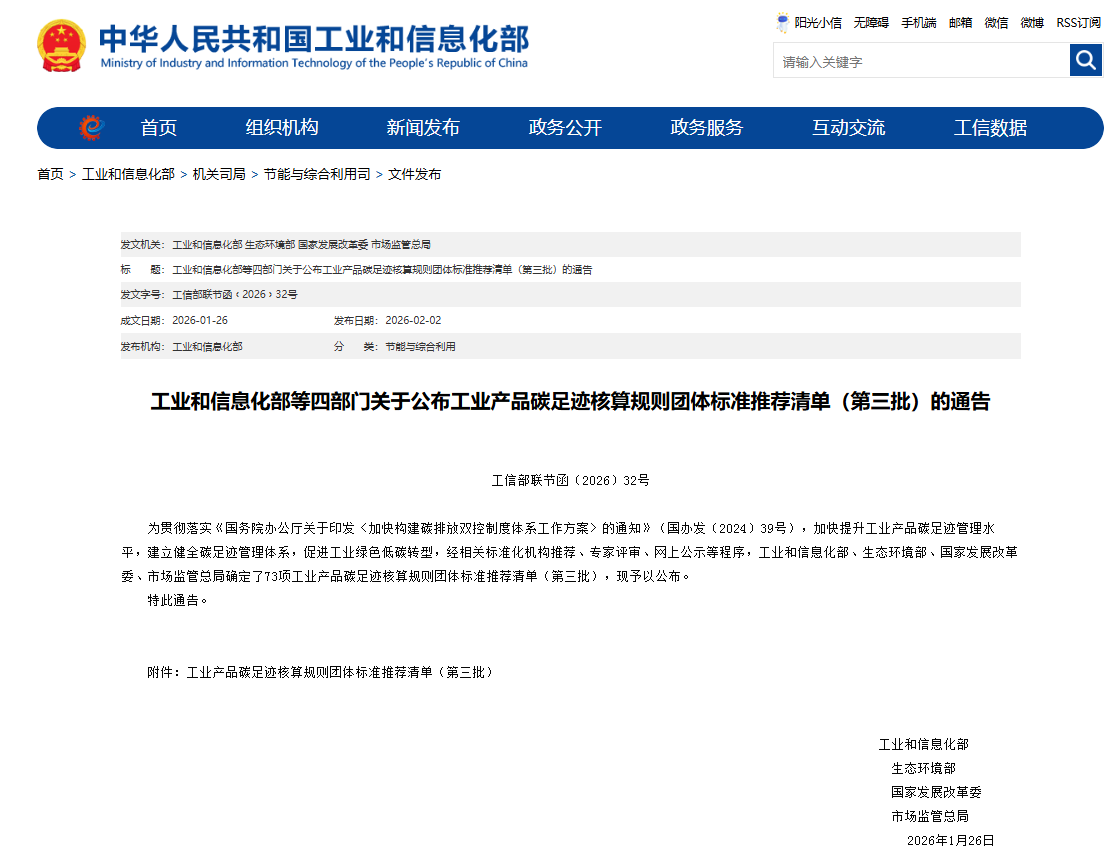 近日,工业和信息化部、生态环境部、国家发展改革委、市场监管总局发布了《关于公布工业产品碳足迹核算规则团体标准推荐清单(第三批)的通告》,确定并公布了73项工业产品碳足迹核算规则团体标准推荐清单(第三批),其中包括13项建材行业团体标准。 |