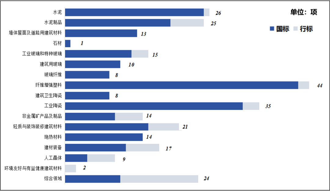 图1 建材各专业领域现行有效的推荐性政府标准数量