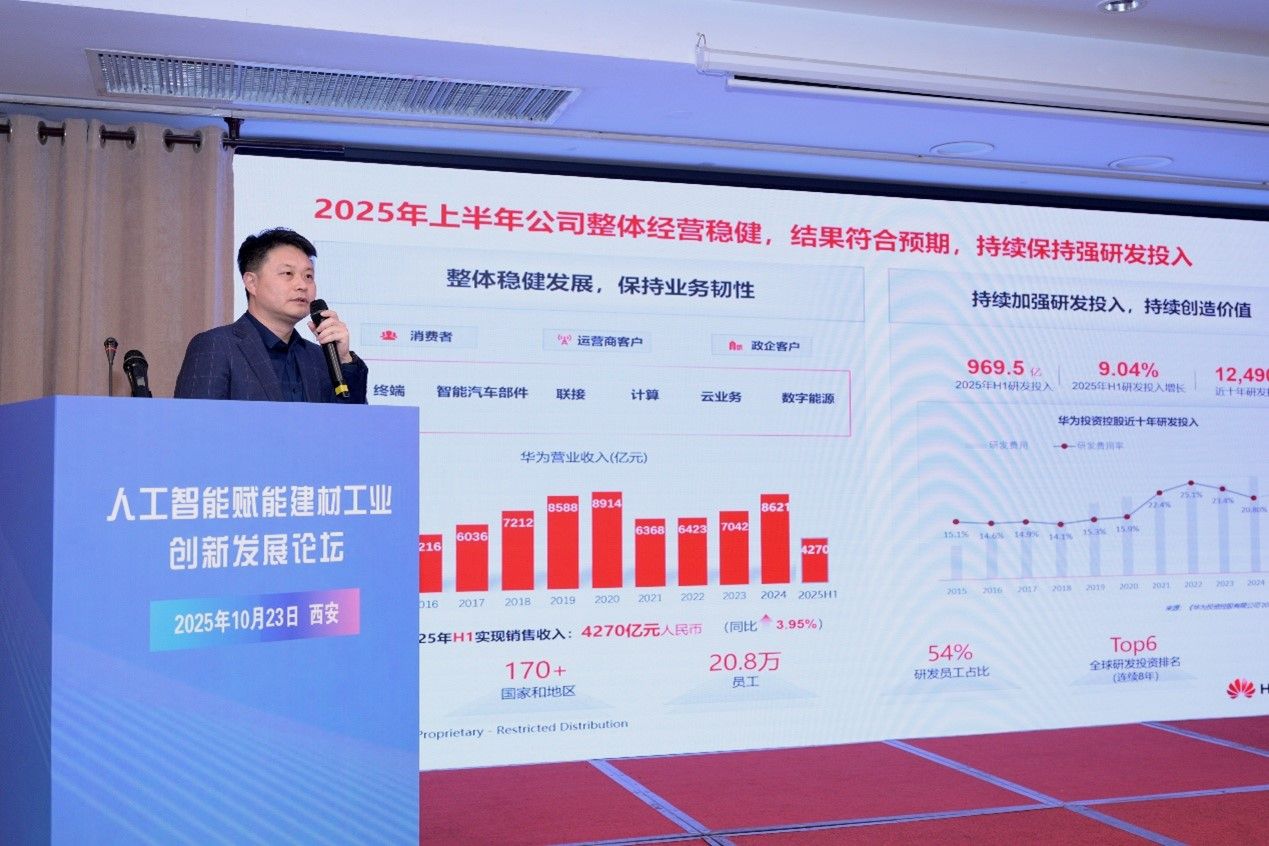 华为油气矿山军团建材行业总经理刘鹏飞在《人工智能在建材行业的应用创新实践及落地展望》报告中,分享了华为在行业内人工智能应用的典型案例和实践经验。