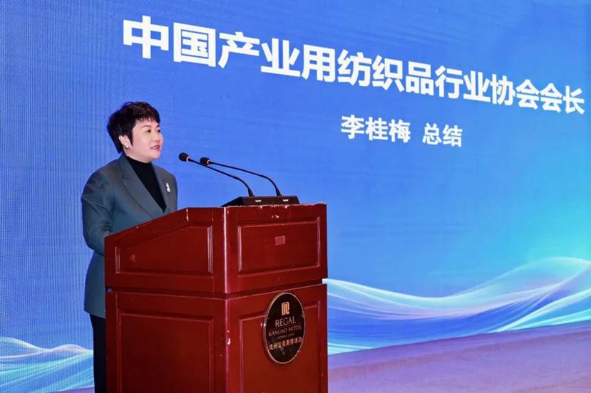 中国产业用纺织品行业协会会长李桂梅 李桂梅在总结发言中强调,土工建筑材料正处于政策驱动与市场升级的双重利好期,其发展现状呈现“机遇凸显、创新加速、挑战待解”等鲜明特征。市场应用端呈现多点突破的良好局面,充分体现了土工建筑材料在基建领域的核心价值。行业要以科技创新、数智化转型锻造行业新质生产力;以品质提升、绿色转型推动行业高质量发展;以全球化资源耦合发展步入“产业强国”之路。 |