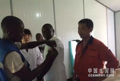 为保障企业正常生产运营,有效防止黄热病疫情蔓延,2016年4月30日至5月4日,中基水泥厂联系当地政府及医疗防疫机构,为工厂650名当地员工注射黄热疫苗。