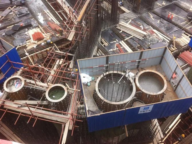 图为C80钢管柱第一次浇筑。 “高强高性能混凝土符合现代建筑发展趋势需求,具有高附加值和绿色建材特色。金隅集团混凝土板块多年来一直致力于该方向的研发与应用。根据目前国内外的应用情况,C80高性能混凝土在我国北方超高层建筑上采取自下而上顶升工艺进行浇筑,混凝土强度等级、施工难度及高度均属国内领先水平。”陈军亮在接受中国建材信息总网采访时表示,结合世界第九高楼天津周大福金融中心项目(主塔楼地下4层、地上100层,设计高度530米,其中外框钢管柱采用C80混凝土泵送顶升浇筑,最大高度300米;单次顶升平均高度约30米,单根钢管柱方量约125 立方米)在天津市滨海新区的落地生根,公司紧跟行业发展和市场需求,率先实施了模拟垂直高度880米的水平盘管实验进行验证。 据陈军亮介绍,在前期科研基础上,天津金隅混凝土有限公司联合北京建筑材料科学研究总院有限公司、北京金隅水泥节能科技有限公司、金隅冀东(唐山)混凝土环保科技集团有限公司、北京建筑材料检验研究院有限公司率先申报并获批2015年、2016年金隅集团重点科研项目,并结合所承接的周大福金融中心项目开展实施,对该项目进行专项研究,从共性关键技术研究入手,攻关高强高性能混凝土配合比设计与优化、性能调控、超高层泵送施工与工程应用成套技术,实现了在我国北方气候条件下C80混凝土在超高层建筑上采取顶升工艺大体量浇筑。 夜以继日攻克项目难题 据了解,该项目研发了四组分胶凝材料体系,建立了骨料粒形和坚固性优选方法,形成了浆体体积与骨料体积最佳配伍,成功制备出C80、C130高强高性能混凝土;攻克了高温条件下混凝土工作性保持及低温条件下强度增长的难题,建立了 -15℃~35℃环境下混凝土性能调控技术体系,实现了大方量、跨季节高强高性能混凝土的连续稳定施工;建立了材料参数、泵送压力和泵送高度之间的关系,发明了智能化配合比系统和生产远程监测系统,解决了高强高性能混凝土超高泵送、顶升施工的难题,在很多方面实现了技术创新。