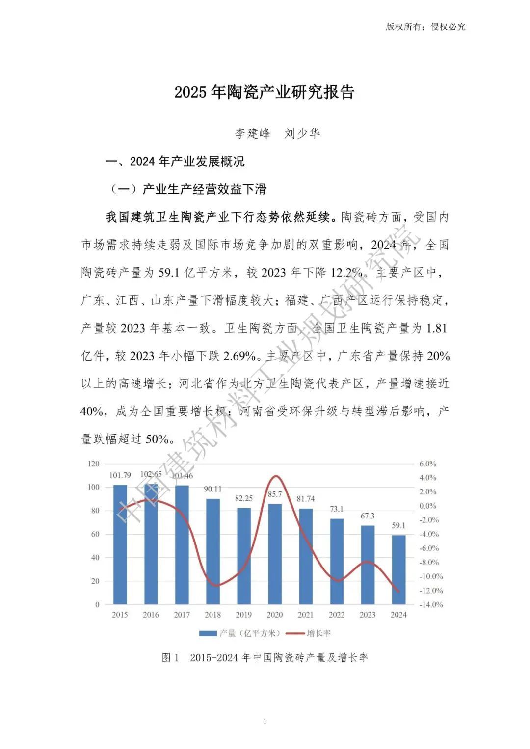 《非金属材料产业研究报告(2025)》日前发布,中国建筑材料工业规划研究院玻陶非矿处处长李建峰对其中的陶瓷产业进行解读。