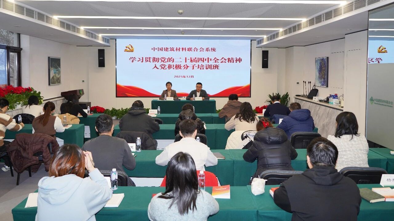 为深入学习贯彻党的二十届四中全会精神,提升中国建筑材料联合会系统入党积极分子的思想理论水平和政治素养,12月16日至17日,中国建筑材料联合会党委举办联合会系统学习贯彻党的二十届四中全会精神入党积极分子培训班。