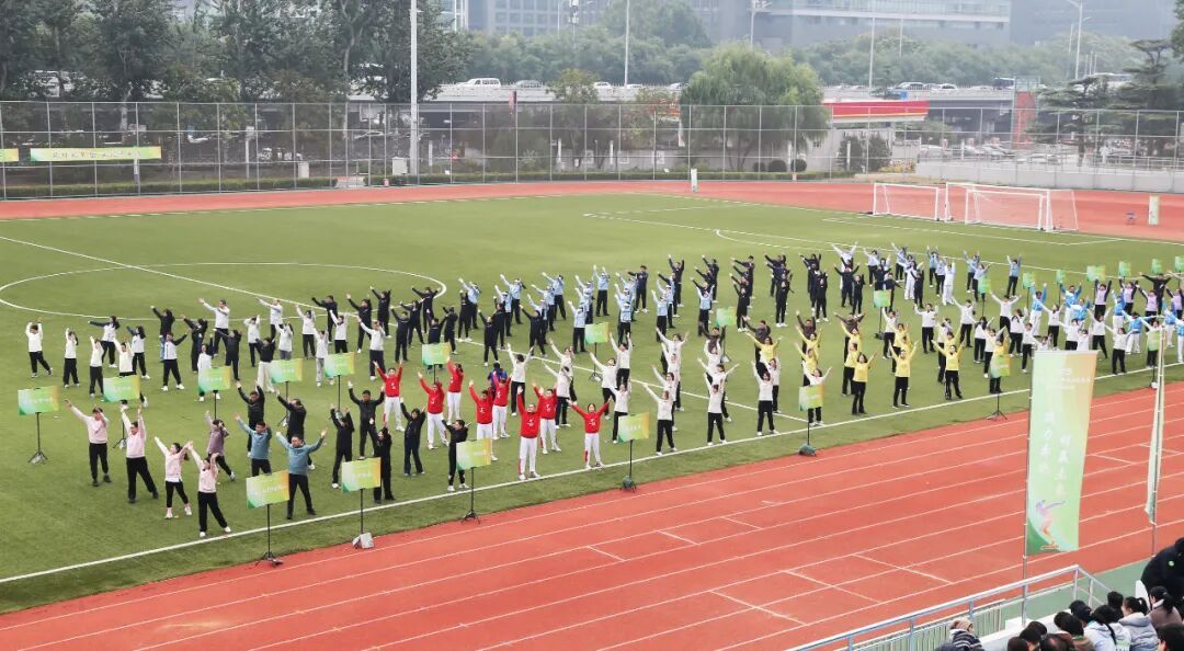 在激昂的旋律中,由180多名系统职工组成数个方阵,进行大型团体操展演。他们气势恢宏、步伐坚定,动作整齐划一,不仅瞬间点燃了现场气氛,更淋漓尽致地展现了系统职工团结一心、奋发向上的精神风貌。
