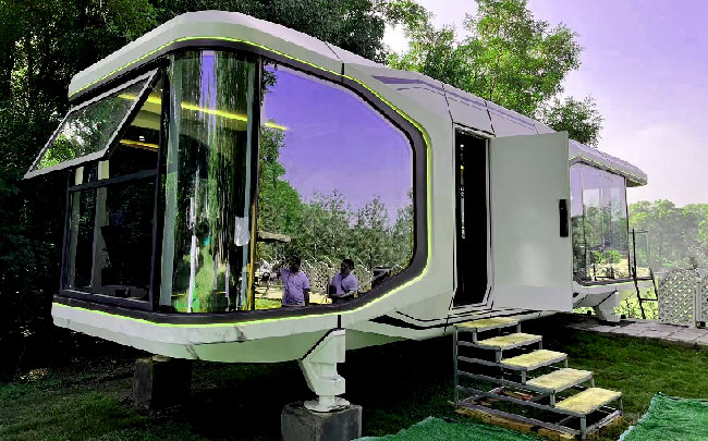 在户外,记者看到以气凝胶为建材建造的太空舱民宿、轻钢别墅、母婴室、饮品店、核酸采样工作站,气凝胶零能耗微生态智能建筑、气凝胶隔热凉亭、气凝胶实木多功能无醛板等产品,以及气凝胶、石墨烯、纤维滤材等相关材料的性能展示实验,零距离感受到了新材料的安全、节能、舒适。