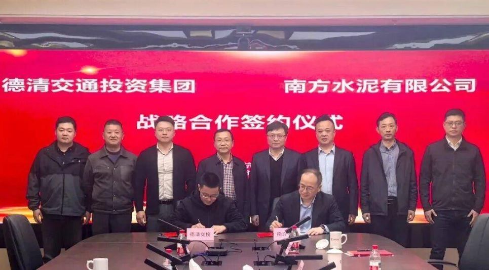3月24日,南方水泥有限公司与德清县交通投资集团有限公司在杭州签署战略合作协议。南方水泥党委书记、董事段振洪,德清交投党委副书记、总经理戴红翔出席签约仪式并见证签约。南方水泥党委委员、副总裁孙斌,德清交投党委副书记、副总经理俞辉代表双方签字。