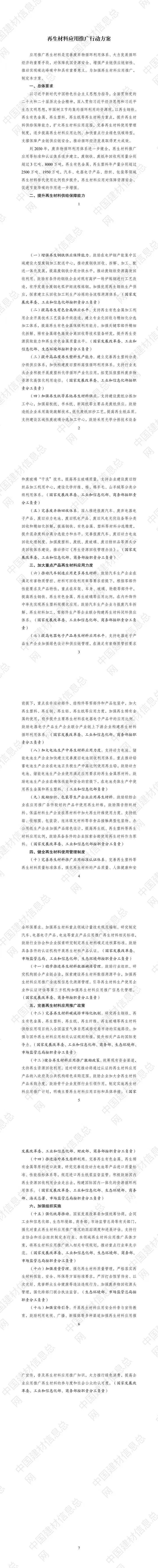 为全面贯彻党的二十大和二十届历次全会精神,认真落实党中央、国务院决策部署,加强再生材料应用推广,完善废弃物循环利用体系,促进循环经济发展,国家发展改革委、工业和信息化部、财政部、生态环境部、商务部、海关总署、市场监管总局等部门制定了《再生材料应用推广行动方案》。现印发给你们,请认真抓好落实。