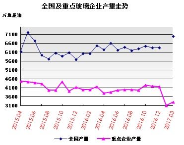2017年3月汇总平板玻璃企业生产平板玻璃3307.75 万重量箱,同比增长2.80%;累计生产平板玻璃10198.14万重量箱,同比增长15.85%,本月销售平板玻璃3348.58万重量箱, 同比下降4.14%,累计销售平板玻璃8956.40万重量箱,同比增长5.21%,本月平板玻璃销售率为101.23%,比上月上涨9.25个百分点,比上年同期下降0.99个百分点。月末平板玻璃库存5383.42万重量箱,同比增长23.39%。