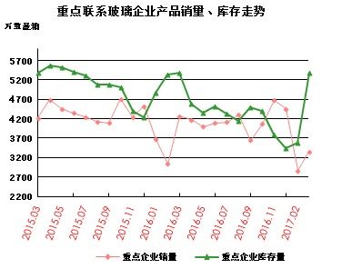 本月汇总的重点联系玻璃企业产品销量小幅减少,企业产量有小幅增长,库存增量明显。统计数据显示:本月产量比上月增长192.91万重量箱,环比上涨6.20%,销量比上月增加483.62万重量箱,占当月产量的5.1%,环比上涨14.62%。月末库存比上月增加1790.65万重量箱。占当月产量的54.13%,环比下上涨49.84%。分析原因主要是:全国各地楼市调控政策趋紧,销量较上月有小幅回落,而产量明显上涨,故企业库存有较为明显的上涨。预计随着全国气温转暖,工程项目增加, 市场活跃,市场销售能力应有增强。