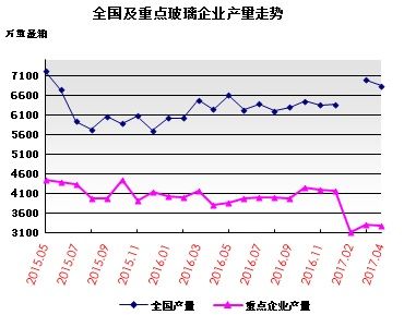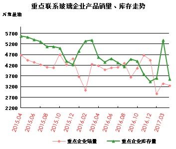 2017年4月汇总平板玻璃企业生产平板玻璃3258.20万重量箱,同比增长2.28%;累计生产平板玻璃13437.12万重量箱,同比增长5.27%,本月销售平板玻璃3257.23万重量箱, 同比下降9.44%,累计销售平板玻璃12392.41万重量箱,同比增长1.59%,本月平板玻璃销售率为99.97%,比上月下降了1.26个百分点,比上年同期下降10.25个百分点。月末平板玻璃库存3550.07万重量箱,同比下降14.33%。