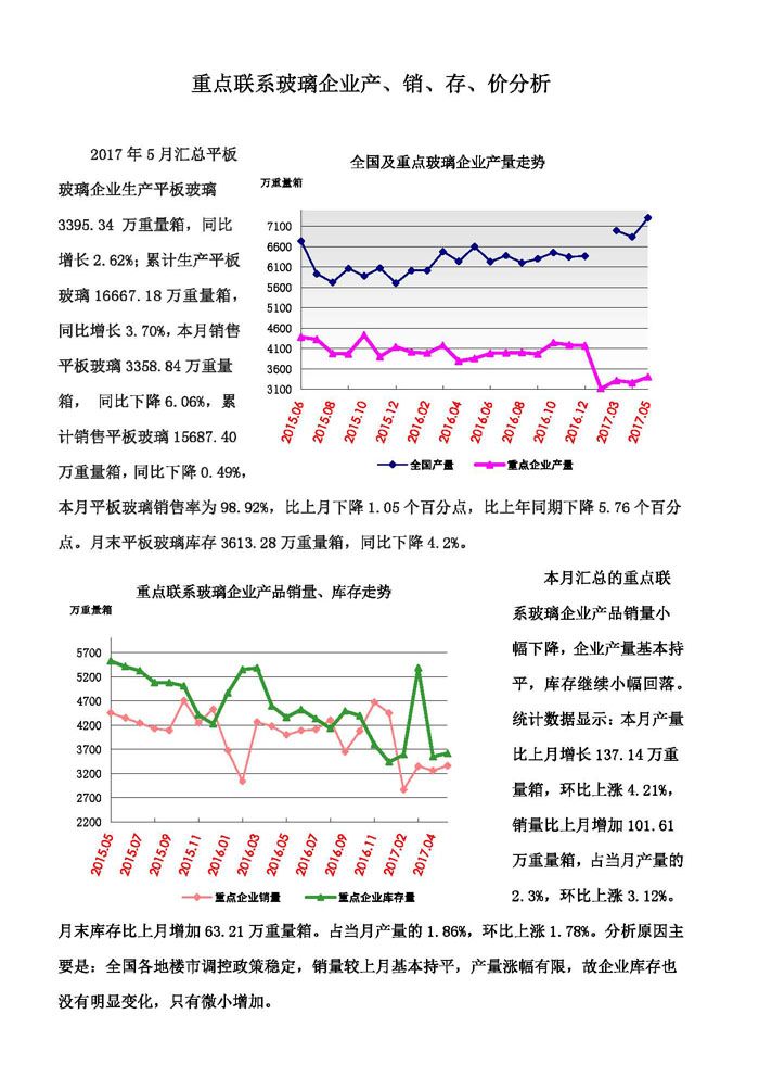 2017年5月重点联系玻璃企业产、销、存、价分析
