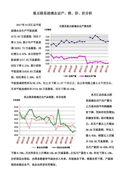 2017年10月重点联系玻璃企业产、销、存、价分析