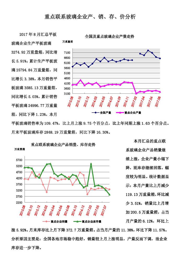 2017年8月重点联系玻璃企业产、销、存、价分析