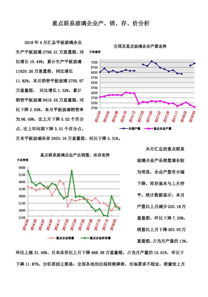 2018年4月重点联系玻璃企业产、销、存、价分析
