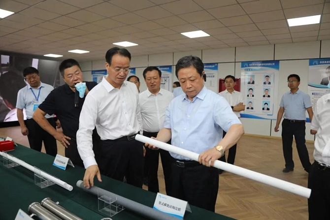 观摩团首先来到陕西禹慧智通环保科技有限公司碳化硅陶瓷超滤膜及有机膜生产线建设项目,听取项目的基本情况和建设进度,了解该项目的亮点、优势、市场方向及发展前景。