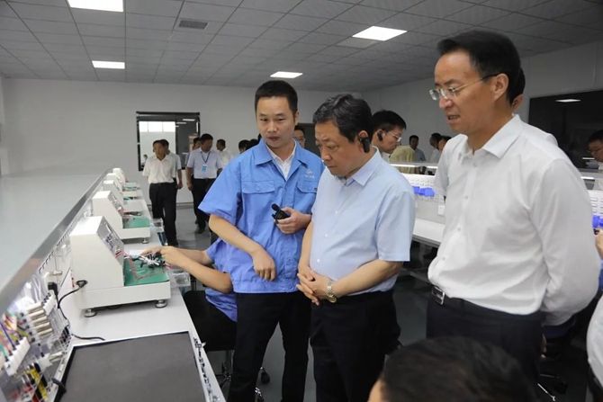 图为观摩团一行走进陕西青云智通流体控制设备有限公司高端微型精密电磁阀生产线建设项目。