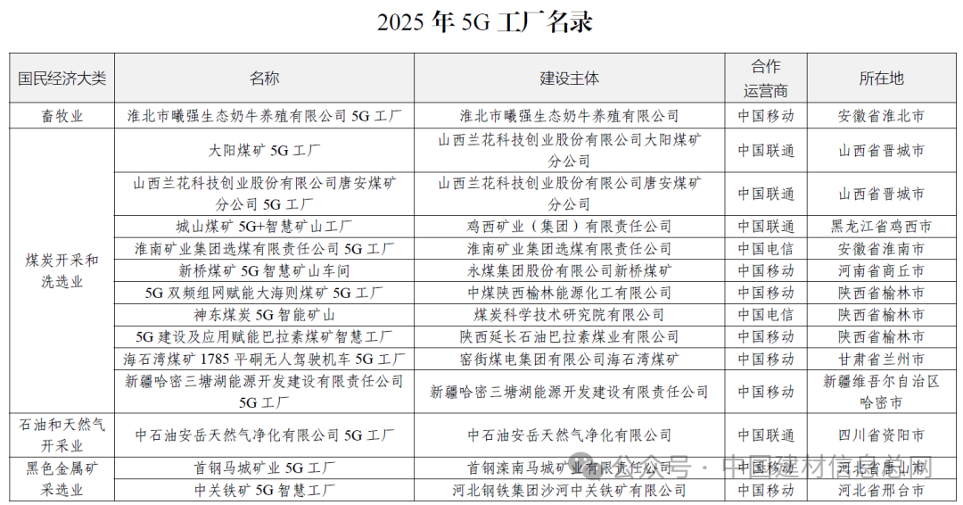 为深入实施工业互联网创新发展战略,加快推进“5G+工业互联网”高质量发展和规模化应用,打造5G工厂中国品牌,各地依据《5G全连接工厂建设指南》(工信厅信管〔2022〕23号)加快推动5G工厂建设,取得积极成效。经地方推荐,专家评审以及公示等程序,确定了2025年5G工厂名录,现予以公布。